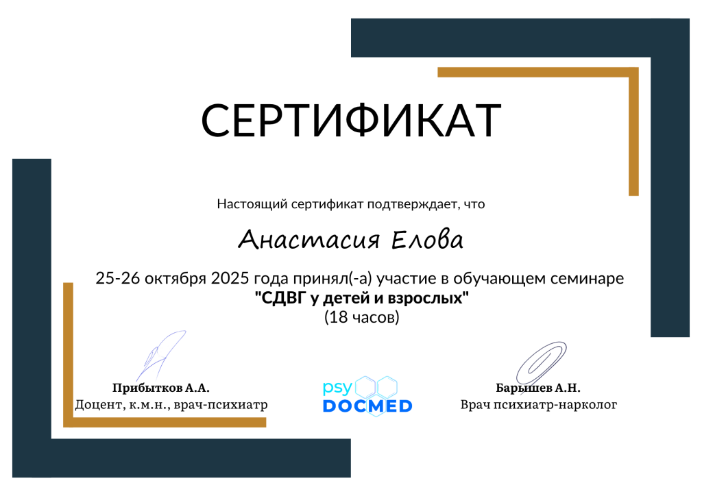 Врач-психиатр Елова Анастасия Сергеевна ведет очный прием в центре «Эмпатия» по адресу: