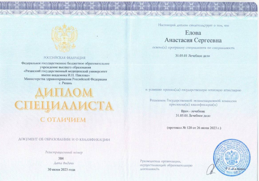 Базовое образование (врач-лечебник) с отличием