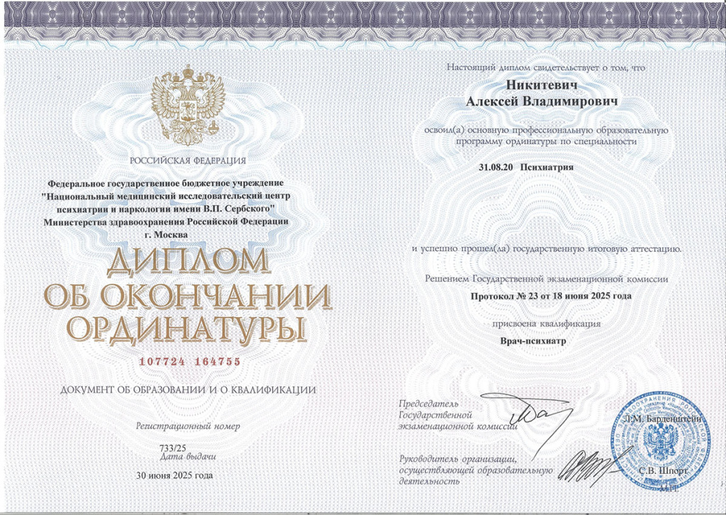 Ординатура (психиатрия) с отличием